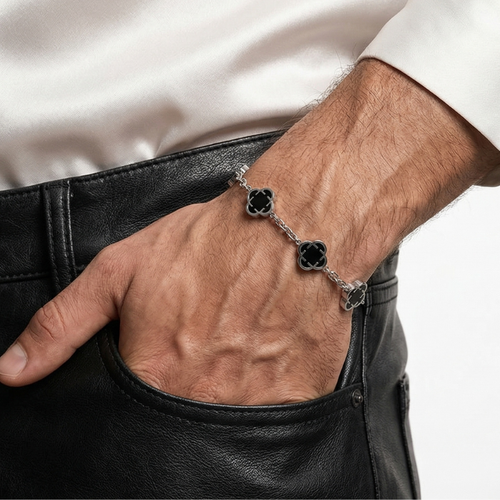 Bracelet Argent Trèfle des Oasis : Noir