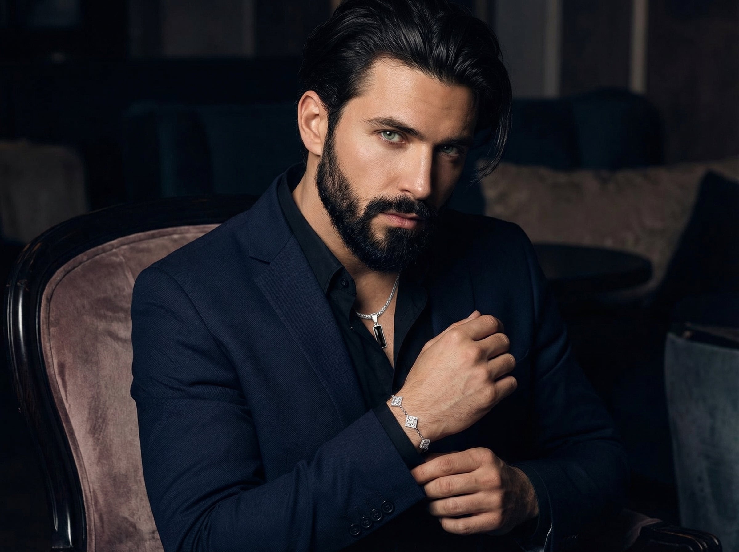 Pendentif "Deep Black" en Acier Poli et Cristal Noir